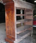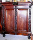 Skříň je nazdobena krásnou figurální řezbou. Rozměr: 174x62 V-212cm, římsa 207x74cm. Dýha ořech, původní a dobrý stav včetně noh, zad a řezby, skříň je rozkládací, dřevo je v dobrém a nepoškozeném stavu.