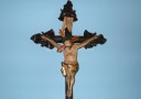Socha, V- 93cm, socha Ježíše má prvotřídní polychromii, kříž je zdoben nádhernou řezbou bez známek poškození, na zadní straně kříže je několik zaschlých otvorů po červotoči ale ten je neaktivní. Je to prvotřídní ukázka lidové řezby a zručnosti našich předku. Mohu jen doporučit.
