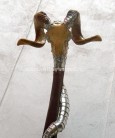 Měsíční znamení Beran. Závěsná plastika Berana, rohy a lebka původní kost, doplněno cínem, dřevo délka 200cm