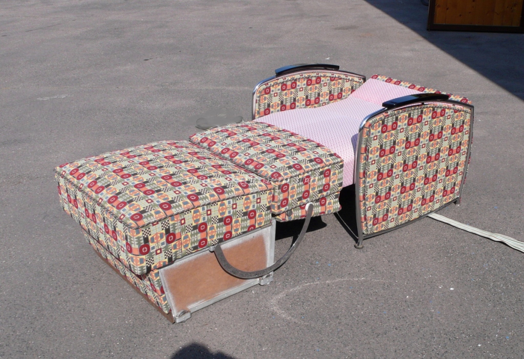 Chromované rozkládací křeslo. Funkcionalismus. J. Halabala. Starožitnosti Antik Praha Mikšík