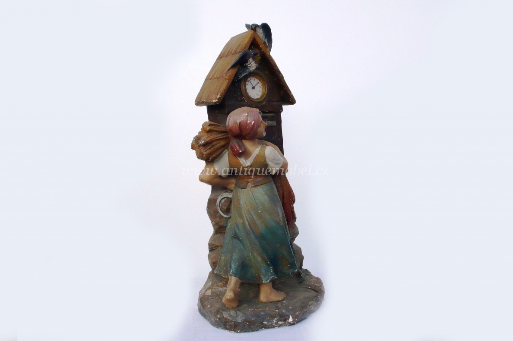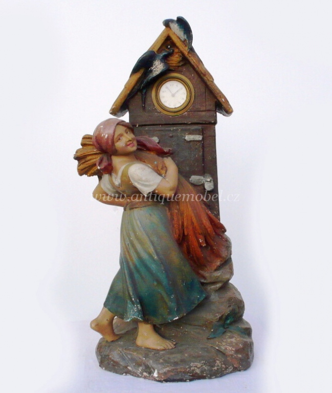 starožitné stolní hodiny krbové, selské, ručně malované hodiny jsou v původním stavu,V-55cm, stroj pérový, ručně malovaný sádrovec.Datace 1900, secese.
