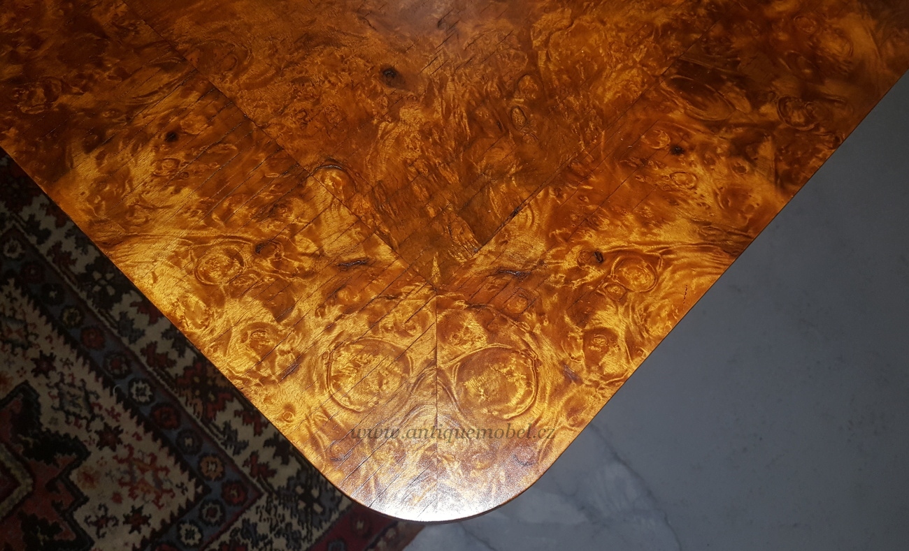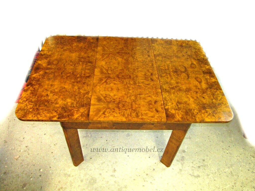 Nabízíme Vám židle a rozkládací stůl, tak zvané televize, návrh Jiří Halabala, dýha kořenice, dobrý původní stav, opravu zajistím. K židlím mám původní rozkládací stůl, dýha kořenice,