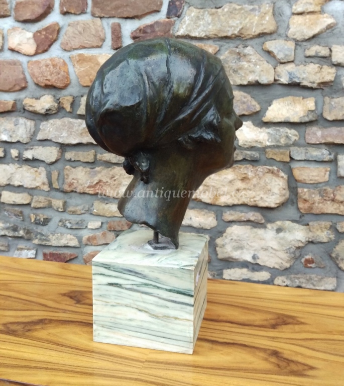 busta ženy, bronz, datace 1930, socha není signovaná, podstavec mramor. V-40cm