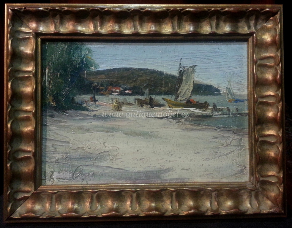 Obraz. Na pláži. Starožitnosti Antik Praha Mikšík